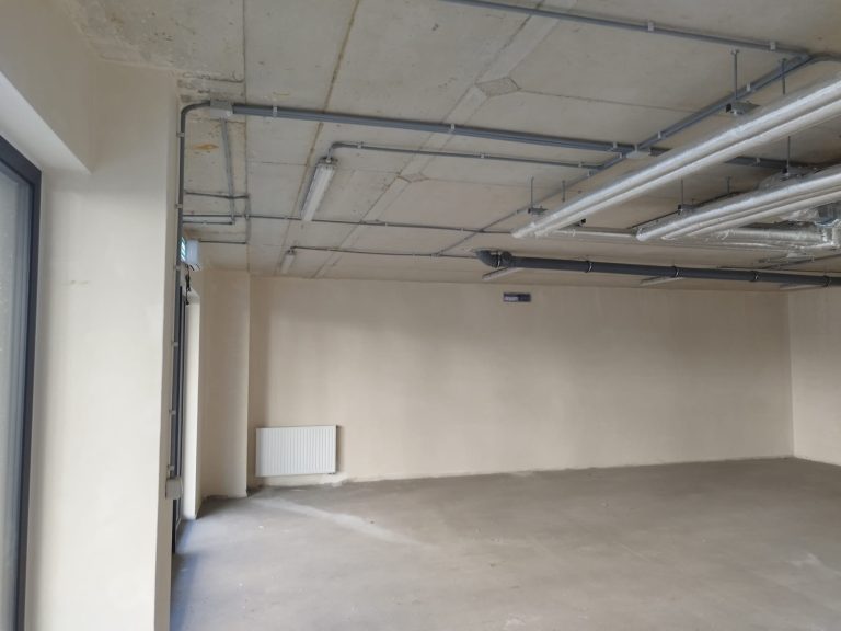 Etap 2a: kanalizacja sanitarna garaż – 90%, kanalizacja deszczowa garaż – 90%, instalacja c.o. garaż – 80%, instalacja cw i zw garaż – 75%, piony kanalizacji sanit. – 25%, instalacjia hydrantowa garaż – 90%, przejścia p. poż. stropowa kanalizacja sanit. – 50%, wentylacja mieszkań – 35%, wentylacja garażu – rozpoczęto.