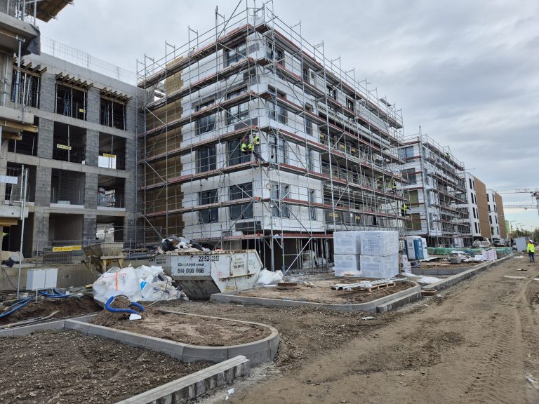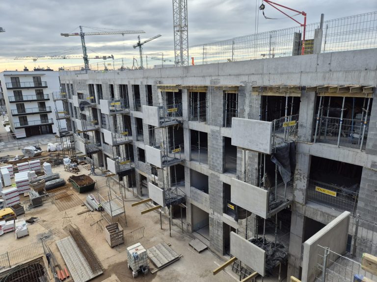 Etap 2a: ściany murowane 2p. – 99%, strop nad 2p. – 75%, izolacja stropu nad garażem – 95%, ściany murowane 3p. – 80%, strop na 3p. – 35%, ścianki działowe parter – 60%, ścianki dziełowe 1p. – 10%, wełna mineralna na klatkach w garażu – rozpoczęto